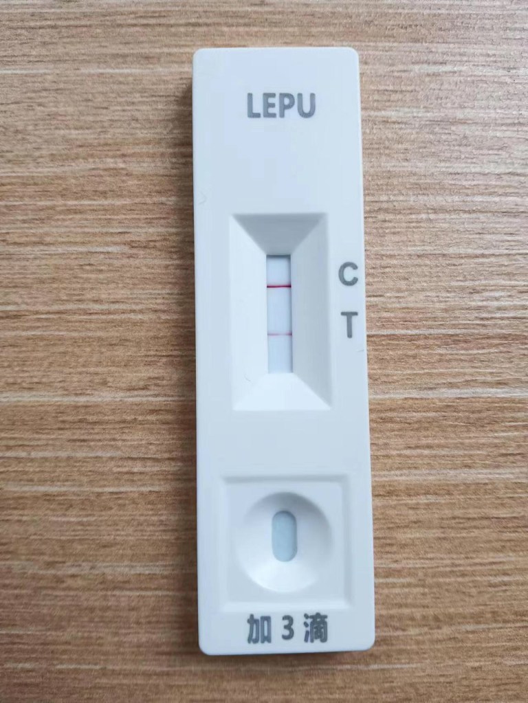 今日、木曜日に飲んだ相手が陽性だったと聞いた。昨日の検査では陰性だったが、今日もう一度検査してみた。検査した直後は陰性だったが、2時間後にみたらTに一本線が出現していた。なんと陽性? ただ熱はない。朝から数回測ったが、36.5-36.7度だった。喉に違和感があるが、それほど気になることはなかった。ただ朝少し頭痛がした。