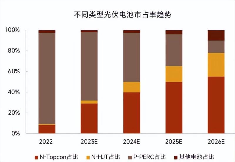 現在、太陽電池技術は、従来のP型PERC技術からN型新しい電池技術への急速な反復アップグレードの段階にあり、N型の新しい電池技術はTOPConとHJTを主なルートとしている。